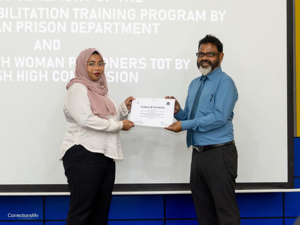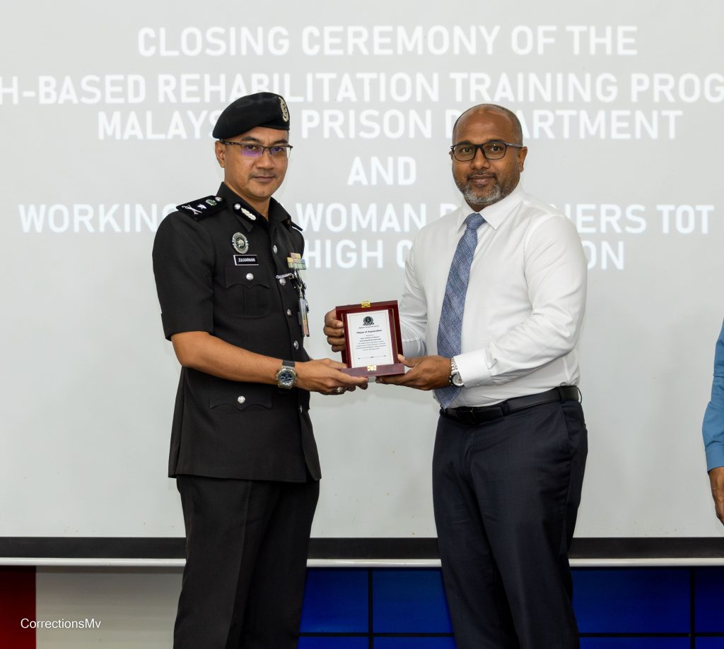 Maldives Correctional Service (MCS) holds closing ceremony of two training programmes today to strengthen the rehabilitation efforts of inmates.